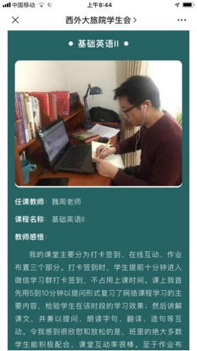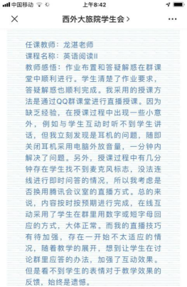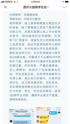 根据《西安外国语大学2020年春季学期本科生教学工作方案》要求,在疫情防控期间,按照“停课不停学、学习不延期”的原则,支部专业课教师、行政干部和辅导员党员同志提前规划、认真部署、积极准备确保教学工作正常开展,“云”课战疫。