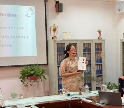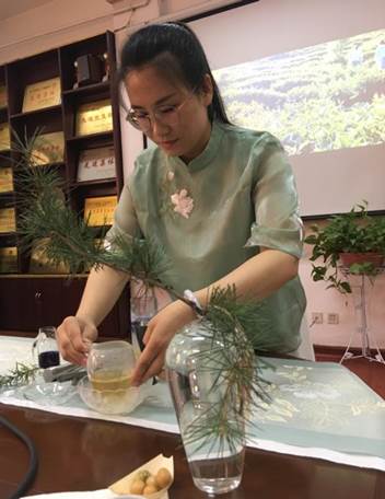 王若仪老师从茶的起源、产地、种属分布谈起,再讲到茶的栽培、加工及利用,并着重比较了唐宋明清时期的茶、茶具及煮茶法,最后介绍了茶的国内及国际化传播,字字珠玑,娓娓道来。讲座过程中,王温淑和何怡桥两位老师为大家展示了茶饮调配,请同学们品尝了四款各具特色的传统茶和创新茶,并引导大家闻香观色以识茶。
