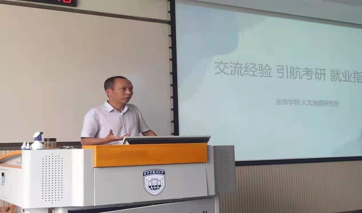 院长李开宇,副院长苏红霞,酒店管理教研室主任杨军辉,旅游管理教研室黄清燕博士,2018级辅导员高野老师与同学们就考研就业选择进行了充分的交流沟通,活动由旅游管理专业教研室主任辛健主持。