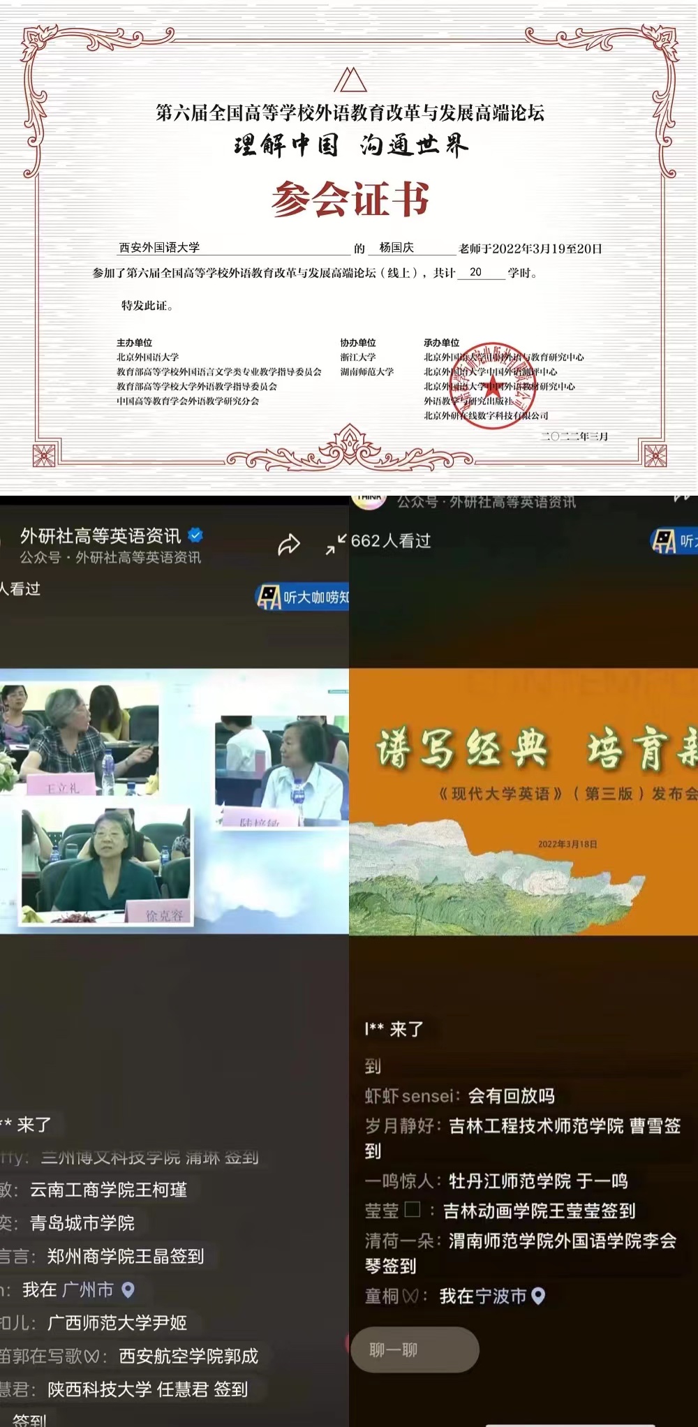 30余名教师观摩学习“陕西省第四届课堂教学创新大赛省级决赛”,14人次参加“第六届全国高等学校外语教育改革与发展高端论坛”,13人次参加“旅游大数据分析职业技能培训”。培训后学院积极组织教师共享培训资料、分享培训心得,提升培训效果,将所学内容真正内化于心,更好地外化于行。