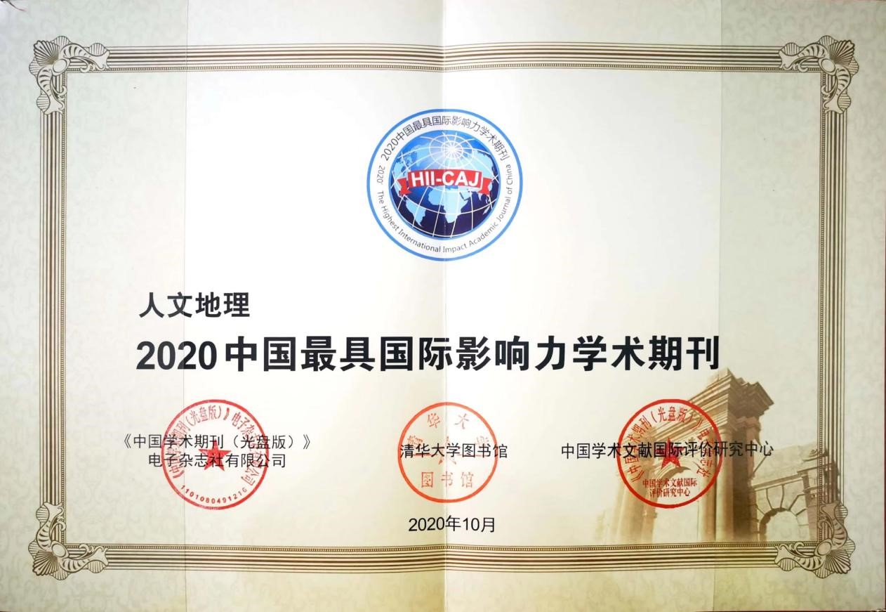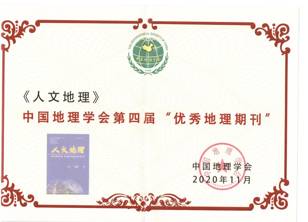 2020年荣获中国地理学会第四届“优秀地理期刊”