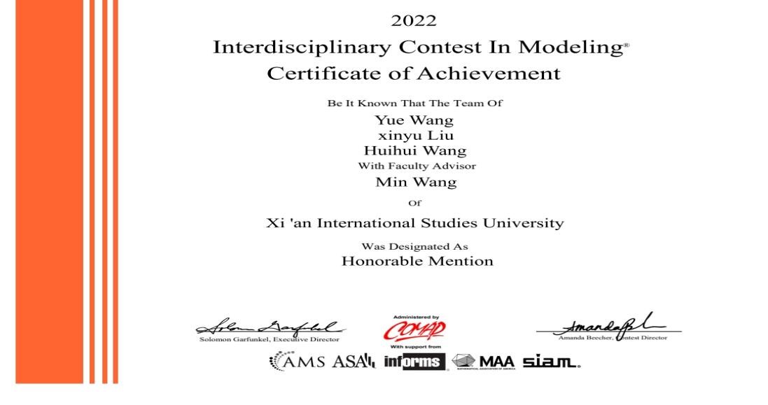 学子王悦、王慧慧、刘心雨团队荣获Honorable Mention奖(国际二等奖、简称H奖),这也是亚博体育