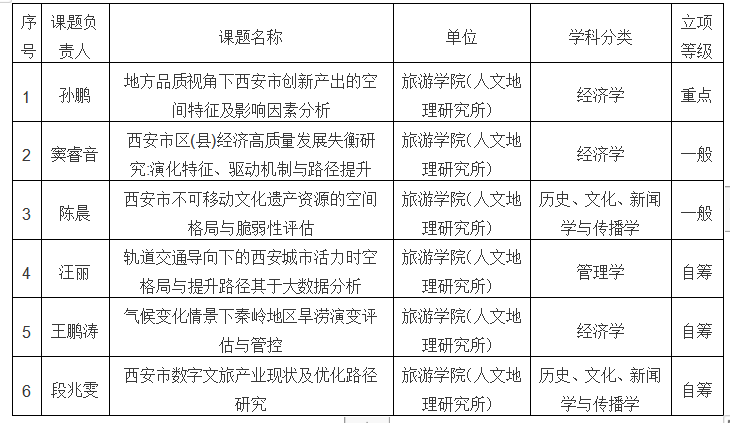 近日,2023年度西安市社会科学规划基金课题立项名单公布。我校共获批的16项,亚博体育 获批立项6项,其中,重点项目1项,一般项目2项,自筹项目3项。名单如下。