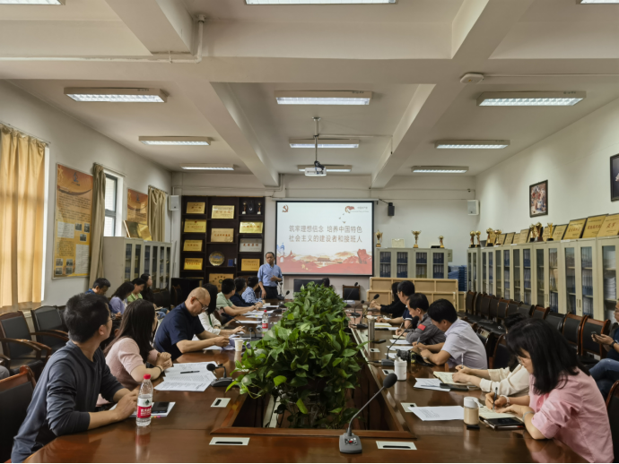 党委副书记上艳妮领学《习近平给中国农业大学科技小院的同学们的回信》,并传达学习近期师德师风负面典型案例、防范网络意识形态领域风险要点。