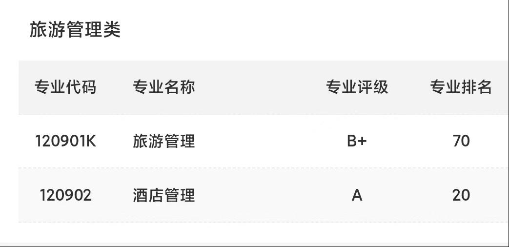 喜提3个专业。其中,酒店管理专业评级为A,人文地理与城乡规划、旅游管理专业评级为B+。