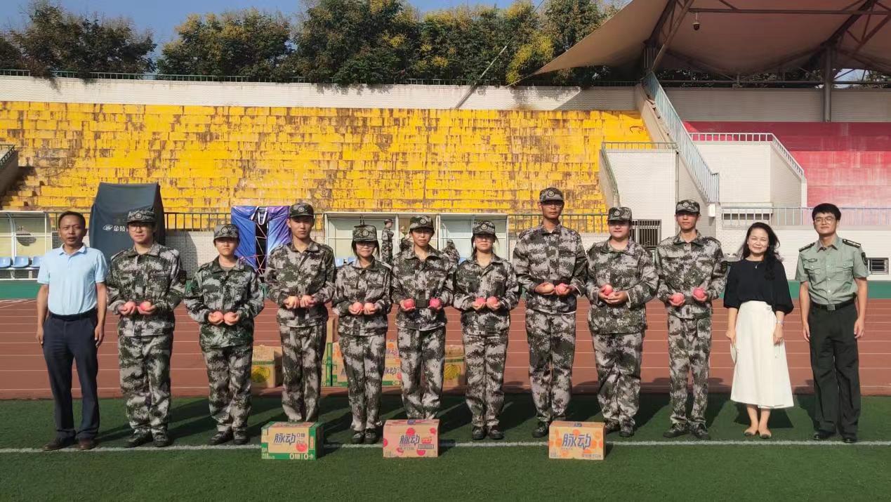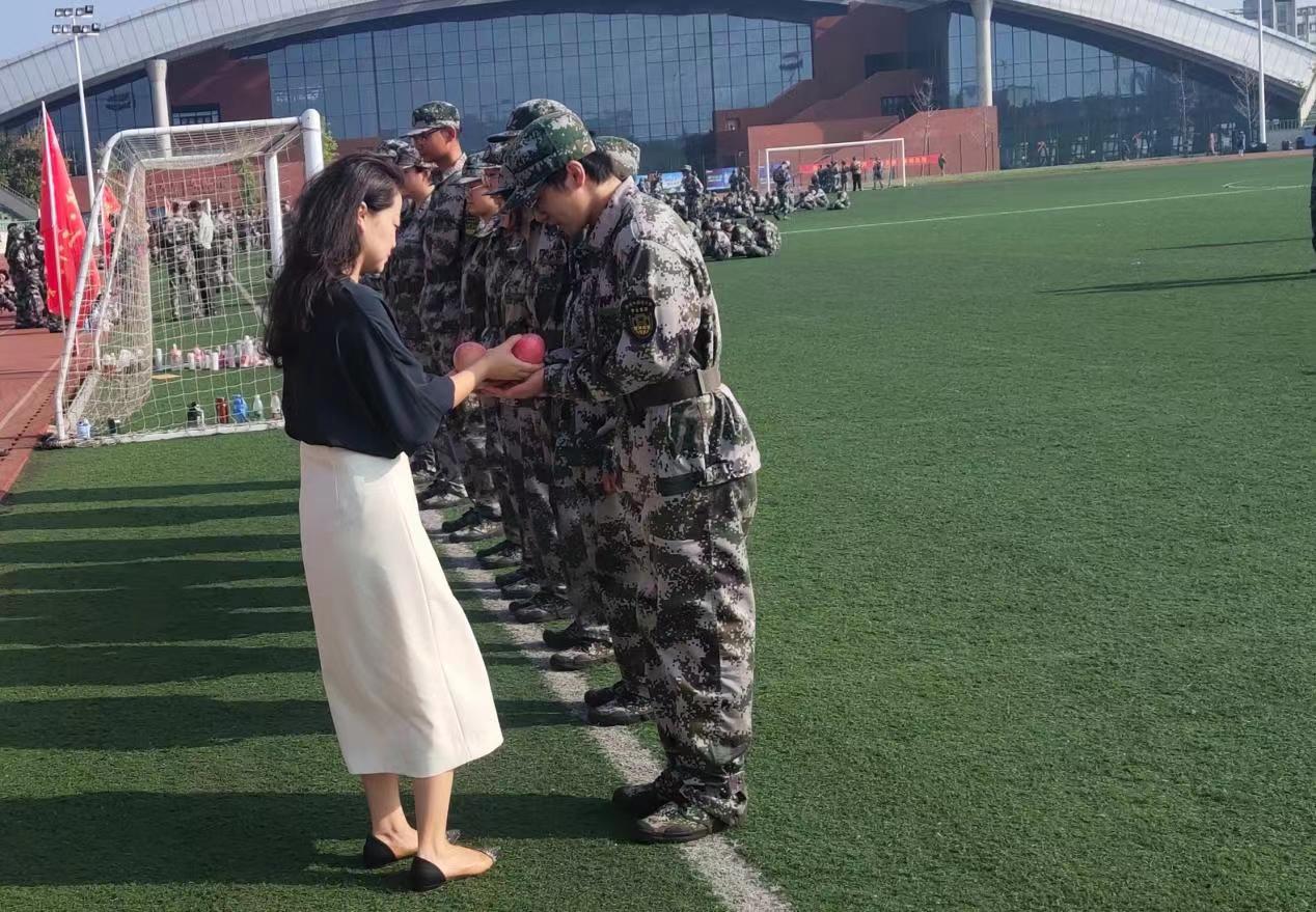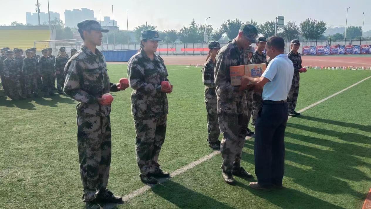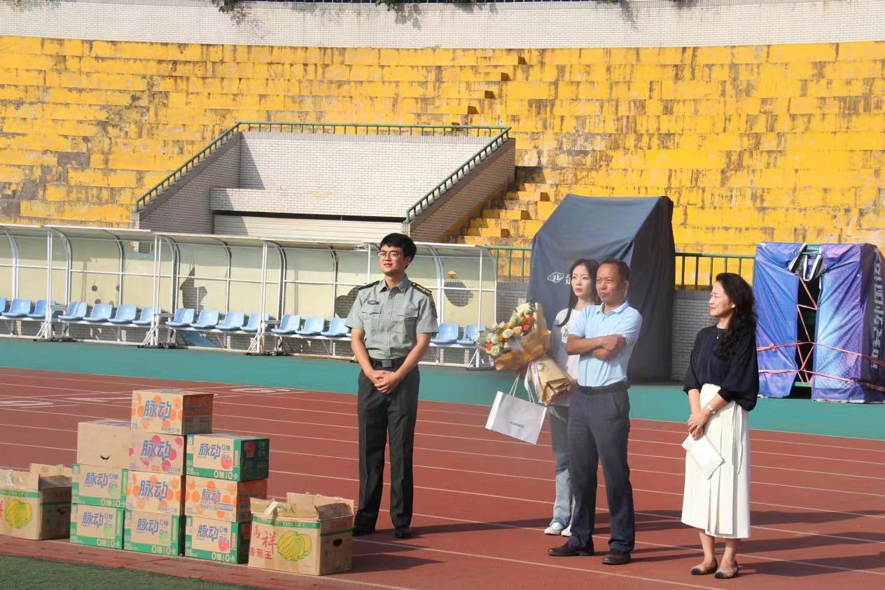 随后,王丹、李开宇代表学院为连队教官和同学们送上鲜花和慰问品,既是表达学院关怀,也是对大家日夜辛苦训练的赞扬和肯定。