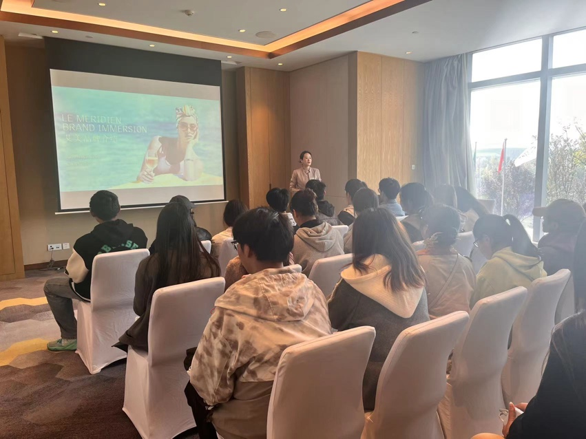 西安浐灞艾美酒店是一个融合了悠久历史和现代文化的高端住宿设施。学生们在浐灞艾美酒店人力资源总监Celine Zhang张倩的引导下,听取了关于酒店亚博体育官方平台入口、服务流程及客户管理的介绍。了解到艾美如何定位目标宾客,并学习了该酒店如何通过其独特的色彩运用和设计灵感,来吸引和服务宾客。此外,在丰富的茶歇小食中,在原亚博体育