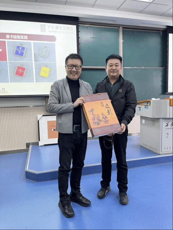 活动中,苏晓智讲到今年恰逢“一带一路”倡议提出十周年,随着倡议的不断深入人心,作为中华文明跨文化传播的重要组成部分,丝路文化被赋予了更深刻的内涵和更重要的地位。早在1987年,联合国教科文组织就发起了“丝绸之路研究计划”并将丝绸之路称为“对话之路”。悠悠丝路,见证了中华文明的传承与创新,承载了中国人民与世界交流的智慧与情感,更成为广大文艺工作者的重要创作源泉。而本次非遗唐卡文化进校园活动中,同学们即将领略到专业的非遗文化解说,也会有沉浸式的唐卡绘画体验,还可以收获到李博士团队精心准备的活动伴手礼和丰富的互动礼品。