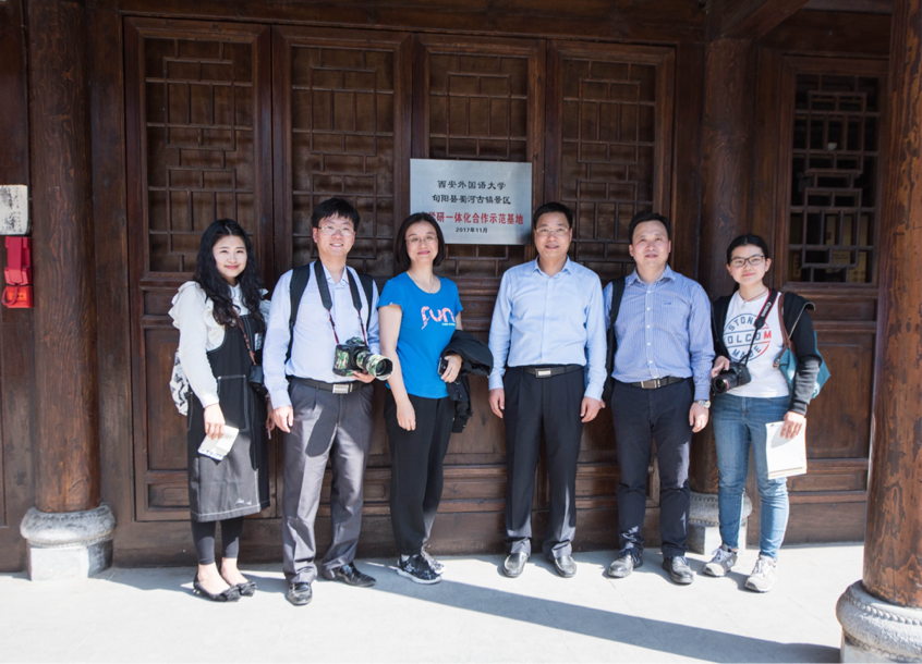 (团队负责人潘秋玲教授和团队成员孙鹏、高万辉、成英文在旬阳蜀河古镇产学研一体化示范基地调研指导)