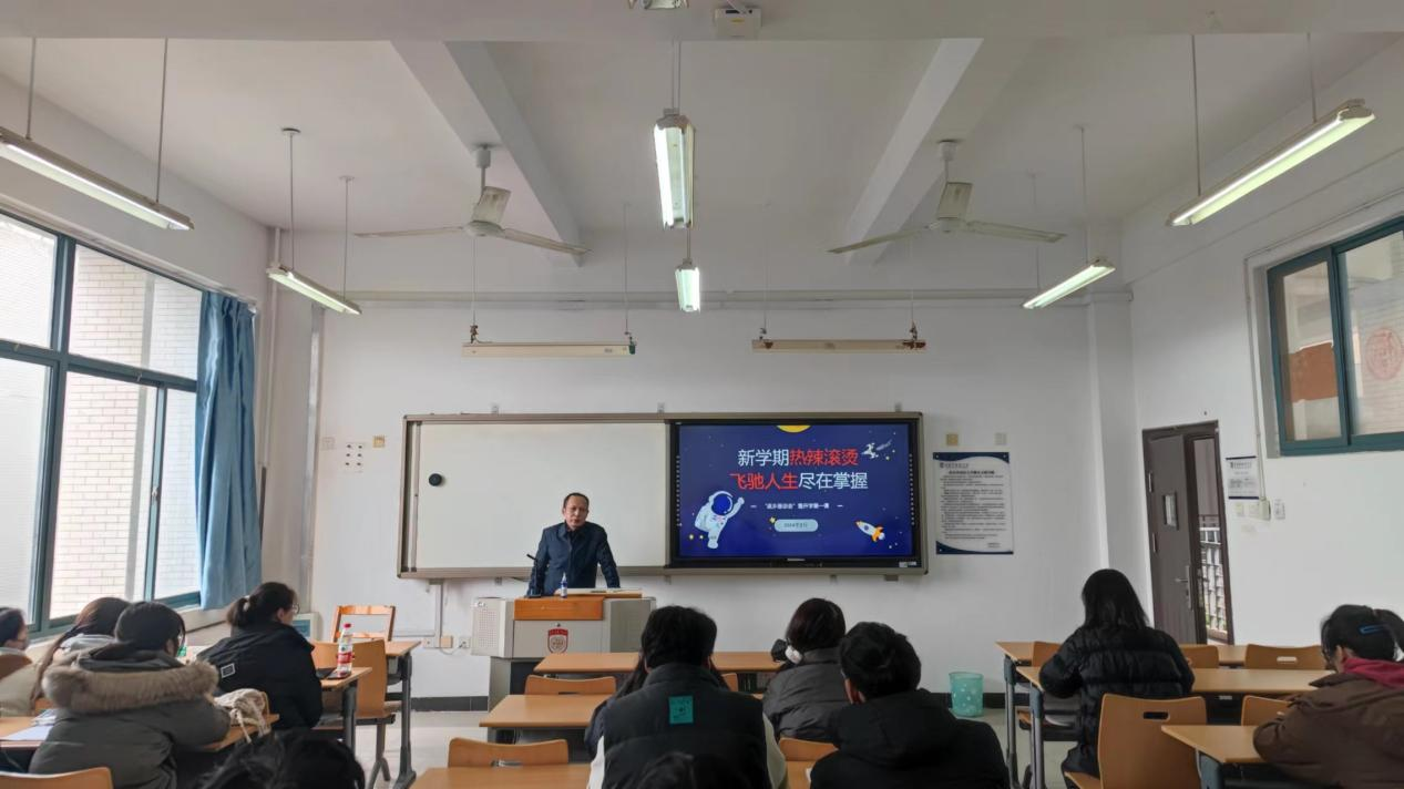 胡森文以“新学期热辣滚烫,飞驰人生尽在掌握”为主题开展“开学第一课”。他带领大家共同回顾了寒假热点事件,重点围绕“复盘大一第一学期”、“新学期Flag”、“重提安全那些事儿”、“选课注意事项”等方面进行了讲述。