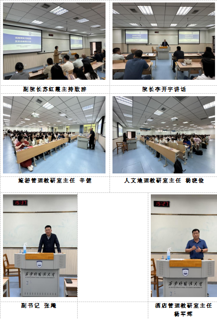 2024年5月8日,旅游学院在SD209召开2024年春季学期实践周研学实践动员及安全教育大会,会议由副院长苏红霞教授主持,院长李开宇、副书记张飚、各专业教研室主任、研学带队老师及参与研学的200余名学生参加会议。