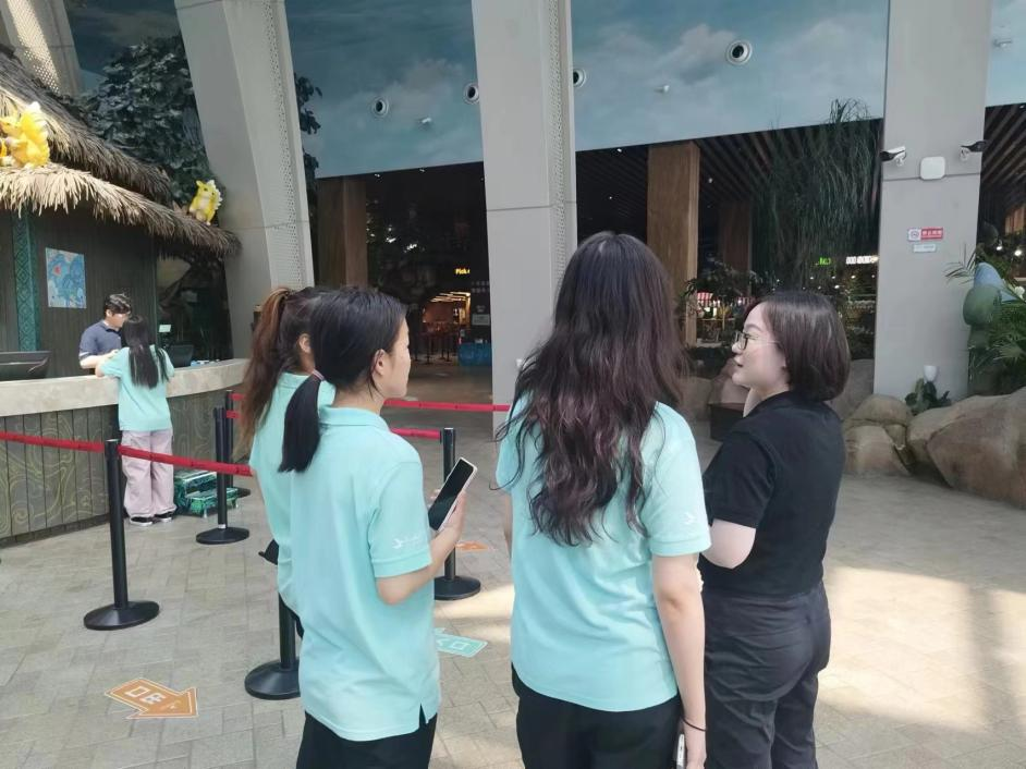 15日一早,培训经理便带领同学们开始了酒店礼仪的学习。酒店针对不同的服务对象,从不同角度对主要客源制定相应的礼仪标准,以达到增强个性化、加深客人印象、提高网络关注度和顾客回头率的目的。经理介绍了酒店特有的打招呼方式“Hisenbo”的具体做法,并指导同学们进行练习。同学们认真聆听,积极练习,很快掌握了十三大常用礼仪。随后,同学们在经理的带领下,游览了酒店的特色房间、森泊乐园、萌宠乐园、雨林餐厅等,深刻体验了“亲自然”主题一站式度假综合业态的魅力。下午,同学们被分为四个小组,分别进入房务部、游乐部、餐饮部及后台部进行实地探索。在各部门经理的耐心指导下,同学们了解了酒店各个部门的工作流程。实践中的每一个细节,都让同学们深刻感受到了旅游服务行业的辛勤与快乐,对企业的用人标准及自己的努力方向有了更清晰的认知。
