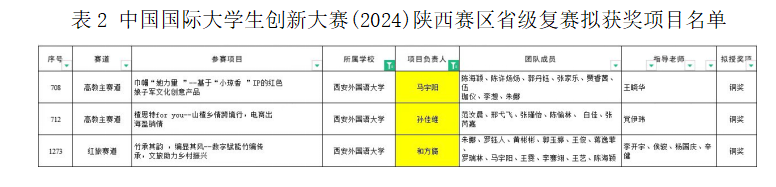 在中国国际大学生创新大赛(2024)陕西赛区省级复赛的结果也新鲜出炉,拟获奖项目名单见表2。