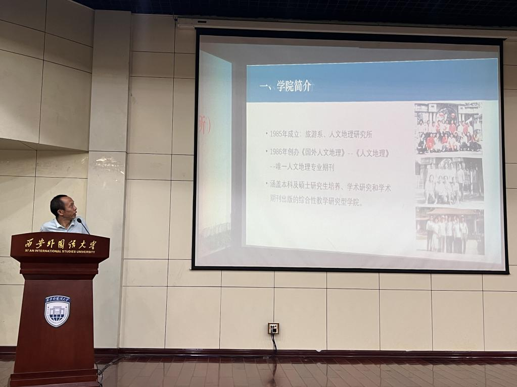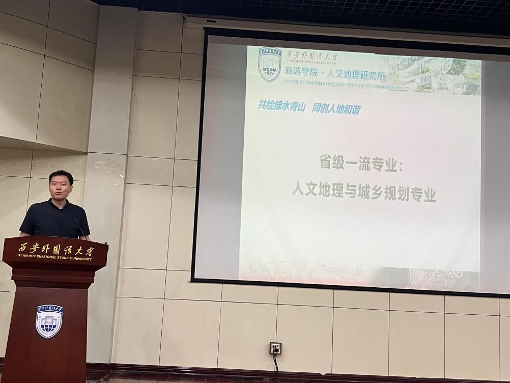 陕西省高等学校教学名师杨红英老师以教育制度的变迁为例,激励新生们要励志笃行、勤学实干、开拓创新、正心明道,成为一名敢于追梦、甘于吃苦、勇于争先、勤于修身的卓越人才。辛健老师通过学院简介、专业概况、师资力量、培养目标、课程模块、国际交流与实践、就业方向等方面对旅游管理专业进行了专题介绍,同时勉励新生要勇于挑战新知、加强体育锻炼、更好地迎接大学生活。窦睿音老师通过专业内涵及特点、培养特色、师资配备、毕业去向等方面详细介绍了人文地理与城乡规划专业,希望新生们能够珍惜大学时光,努力学习、积极进取、勇于创新、坚持到底,为圆梦未来打下坚实基础。