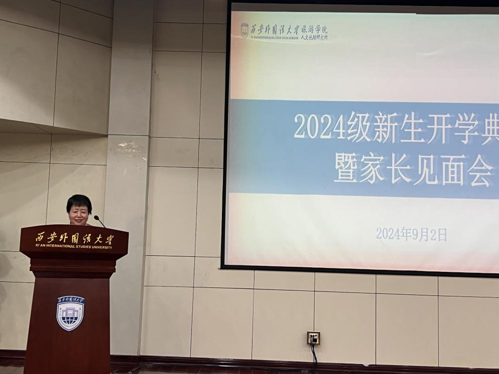 (人文地理研究所)2024级新生开学典礼暨新生家长见面会在行政楼报告厅举行。学院全体领导班子、教研室主任、教师代表、新生任课教师、新生辅导员、2024级全体本科生、研究生及部分新生家长参加典礼。典礼由党委副书记张飚主持。
