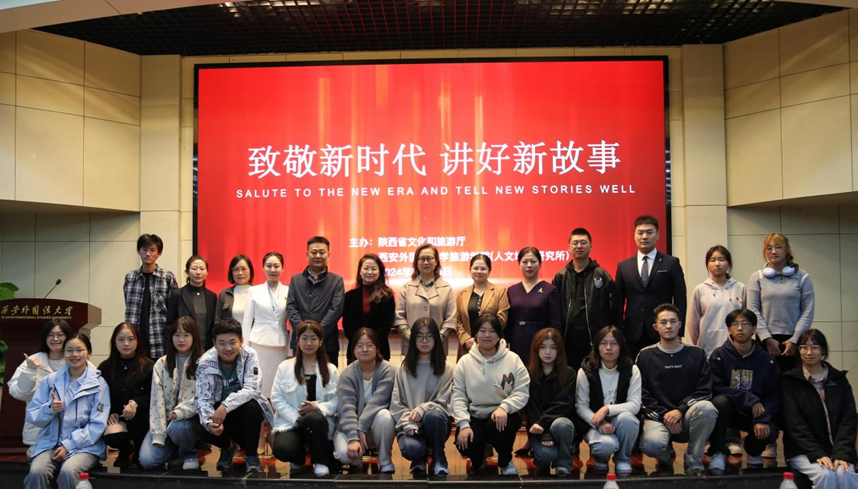 (人文地理研究所)主办的“致敬新时代 讲好新故事”红色故事宣讲会在长安校区校务楼报告厅举行。陕西省文化和旅游厅一级调研员董亚美、校党委宣传部副部长上艳妮、学院领导班子成员、四位在文旅一线工作的宣讲员及学院师生代表出席活动。会议由学院党委副书记张飚主持。