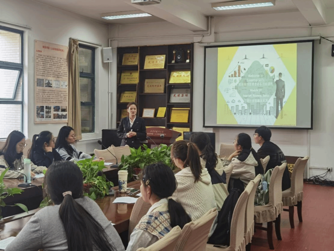 10月9日,第一节课《营商的基本原理》率先登场,浐灞艾美酒店人力资源部总监张倩受邀讲解万豪营商的基本原理。张总以丰富的行业经验和专业知识,结合实际案例,细致阐述酒店运营流程,以及提升客户与员工满意度、提高市场占有率和收益的有效策略,让学生们对酒店行业的魅力与挑战有了初步感知,同时也加深了同学们对酒店行业的理解与认同。