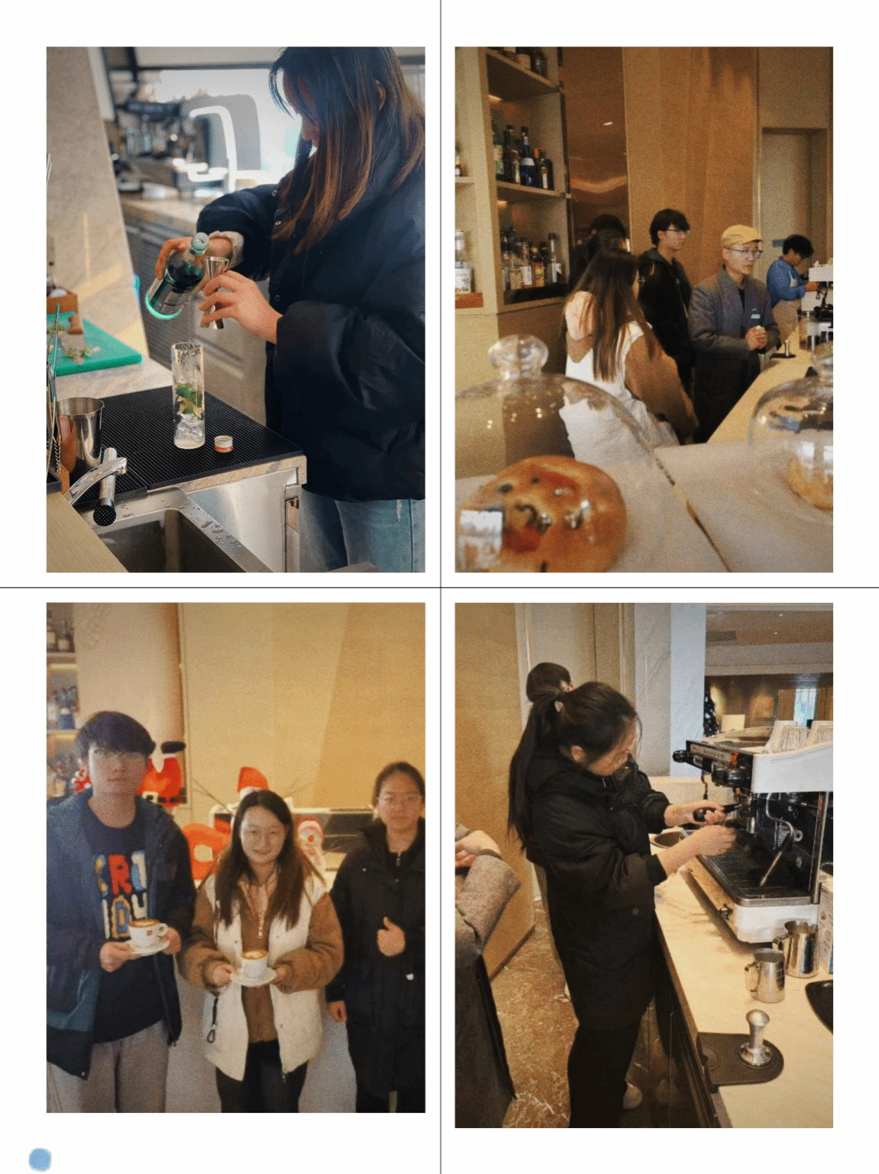 12月11日,课程以翻转课堂的形式进行,主题为酒店餐饮服务及运营。学生们分组前往西安浐灞艾美酒店、西安高新区喜来登酒店、西安海荣JW万豪酒店和西安威斯汀大酒店,实地学习咖啡、鸡尾酒艺术以及餐饮数字化运营。大堂吧经理悉心讲解咖啡冲泡方法,同学们在专业指导下,深入学习咖啡拉花、手冲咖啡等技艺,将理论与实践紧密结合,创造出独具匠心的咖啡作品,丰富了对酒店餐饮服务及运营的理解。