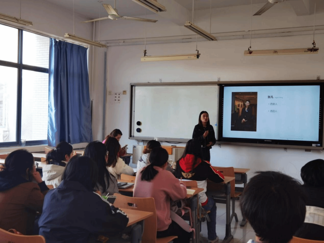 11月6日,西安威斯汀大酒店的coco汪主讲万豪市场营销管理课程。汪总详细介绍市场营销部门的构成与分工,并以自身经历阐释市场营销的重要性。课上师生积极互动,汪总耐心解答同学们的疑问,其丰富的行业经验和专业知识让学生们对酒店市场营销领域有了更清晰的认识。