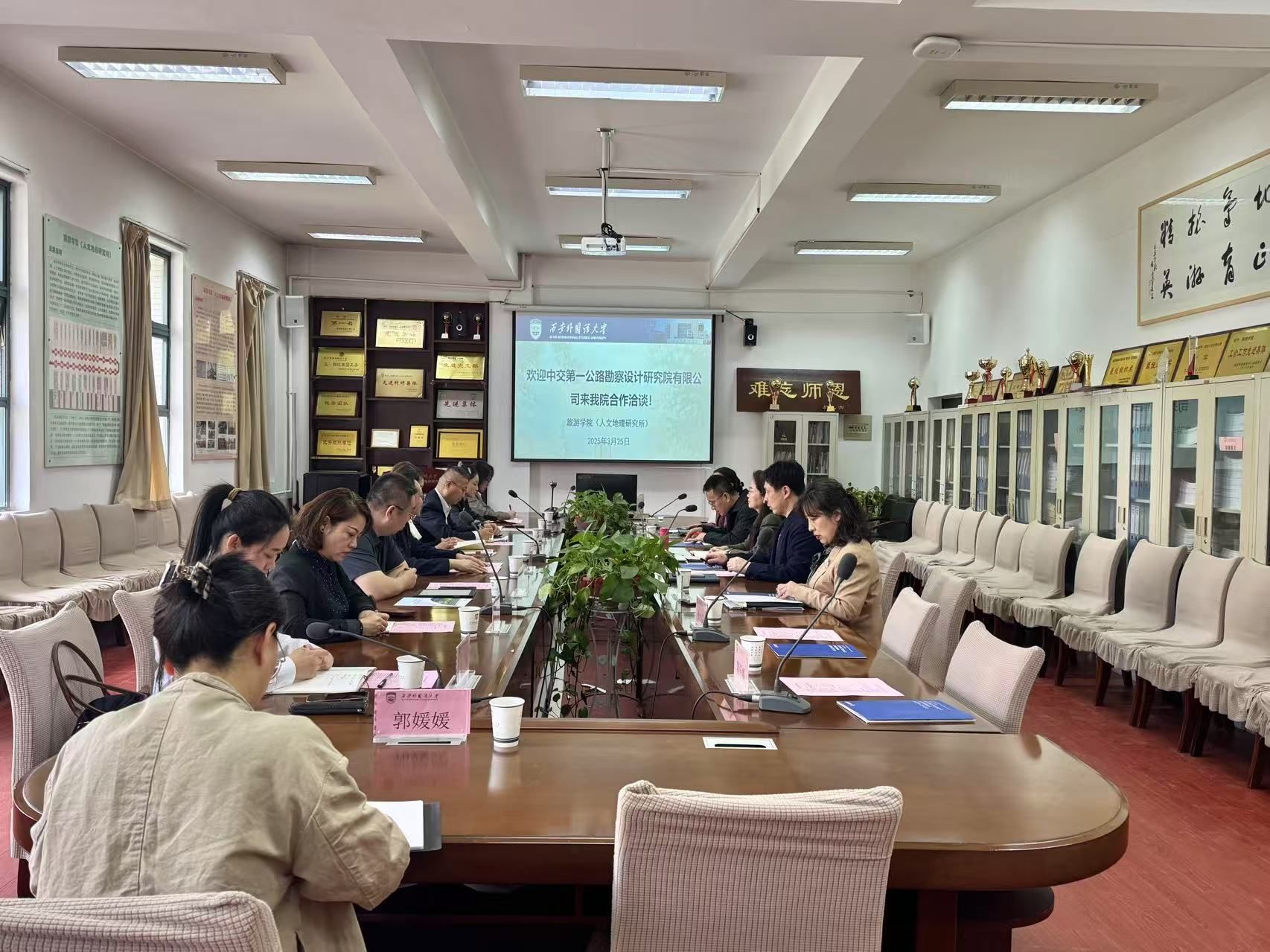 2025 年 3 月 25 日 下午,中交第一公路勘察设计研究院有限公司纪委副书记、党委工作部部长李保国、人力资源部副主任武星、市场开发部副总经理官玉明、全国重点实验室理事会秘书马楠、海外事业部总会计师乔亮、环境公司副总工程师郭媛媛及西外校友代表一行到访亚博体育