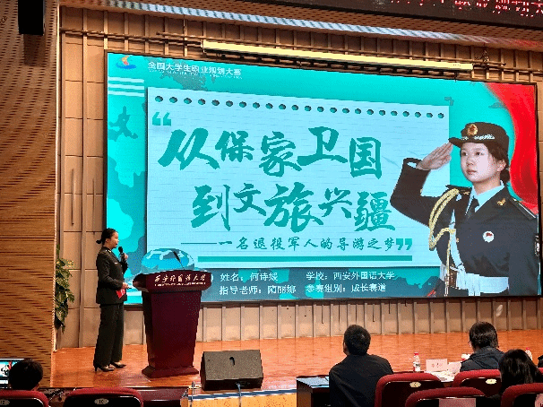 何诗媛于今年九月刚刚退伍复学,两年的军旅生涯虽让她暂别校园,出现一定学业知识空缺,但复学后的她并未退缩,而是以军人迎难而上的坚韧品格,全力投入学业追赶,在知识的海洋中重新找准航向。此次职业规划大赛,成为了她展现成长与初心的重要舞台。
