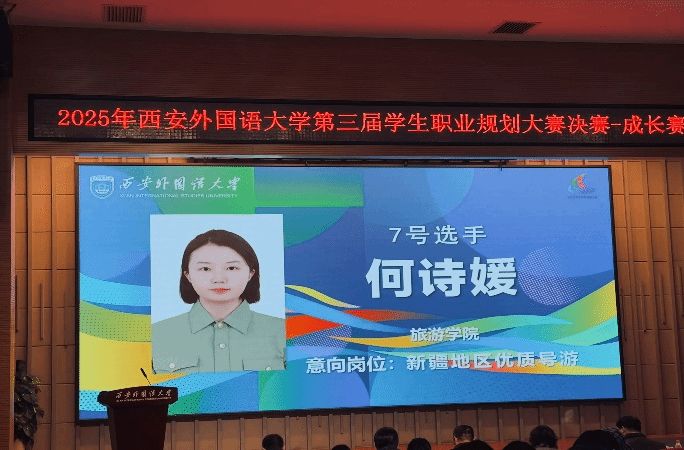 比赛现场,何诗媛深情讲述了自己立志成为扎根新疆地区优质导游的初心,字里行间满含对边疆建设的热忱与向往。她分享了自身在职业探索过程中的所见所感,实践活动中的收获与深度思考,并对未来职业发展路径作出了务实详尽的阐述。真挚的家国情怀、清晰的奋斗路径,不仅展现了她对职业发展的深刻认知,更打动了现场每一位评委与观众。