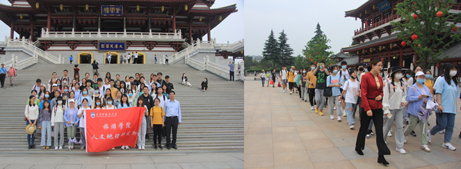 大唐芙蓉园,是中国第一个全方位展示盛唐风貌的大型皇家园林式文化主题公园。在工作人员的讲解和陪同下,师生们深入了解大唐芙蓉园的文化内涵、发展历史、旅游规划、景观营造、产业发展等方面内容。