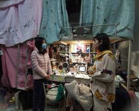 同时,为落实学生返校后的疫情防控工作,确保学生公寓各项工作平稳有序地进行。学院党委书记郭建平带领各级辅导员以及赵静老师走访学生公寓楼,对新学期返校学生的情况进行了关心慰问,并与学生亲切地谈心谈话。在谈话过程中,辅导员们积极主动地与学生沟通交流学习与生活上的问题,加深了对学生日常行为的了解。