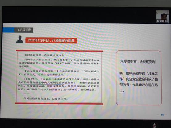 首先,支部党员教师参加了学院党委组织的党课学习。党课由校党委委员、统战部部长郑锐华老师讲授,主题为“正确看待党风廉政建设和反腐败斗争形势”。郑部长的党课内容丰富,分析阐释深刻,党员教师们表示受益匪浅。