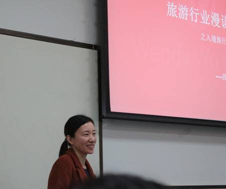 首先,班衡总经理从“旅游的定义是什么”这个问题入手将大家引入话题,以诙谐幽默的方式解释了旅游的定义。随后,他以WWT西安卓恒国际旅行社有限公司作为实例,边讲解边播放视频片段,详细介绍了一套完整严谨的旅行社体系(产品是核心、服务是灵魂)。据介绍,WWT西安卓恒国际旅行社有限公司是西北五省唯一一家外资旅行社(欧美入境市场之传统典型),25年一路走来经历了风风雨雨,成为了现在的行业领军者,这些都离不开公司创始人——Wendy Wu女士的不懈努力和追求。最后,班衡总经理就旅游业的未来发展趋势提出一些中肯的想法,鼓励在场的同学要敢闯敢想,为美好的未来而勇于进取和创新,同时希望各位同学要脚踏实地,不断学习,积累经验,增广见闻。