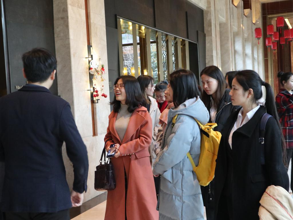 调研分为讲座交流和参观两种形式,首先,凯悦人力资源负责人对酒店的发展史、亚博体育官方平台入口进行了介绍;并通过现身说法、举例说明的方式,对即将步入职场的同学提出增强自我认知、积极参加社会实践的建议。交流答疑后,酒店负责人带领旅英学子对酒店各部分进行参观并从酒店设计理念、酒店文化元素等多方面进行介绍讲解。最后合影留念后,学生与人力资源团队积极交流,询问实习相关信息及应聘要求。