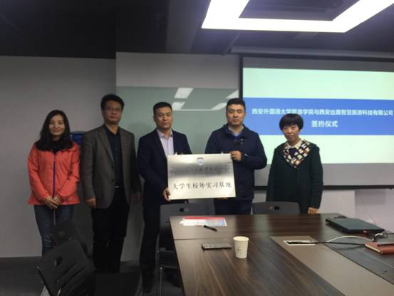 2018年10月22日,西安丝路智慧旅游有限公司“西安外国语大学”大学生校外实习基地挂牌仪式在曲江369互联网创新创业基地顺利举行,亚博体育 副院长苏红霞、教务处副处长庞闻、西安三六九互联网产业园有限公司董事长孔小林、西安丝路智慧旅游有限公司总经理米健等参加了仪式。双方就实习生联合培养、校企深度合作等有关事宜进行了沟通交流。