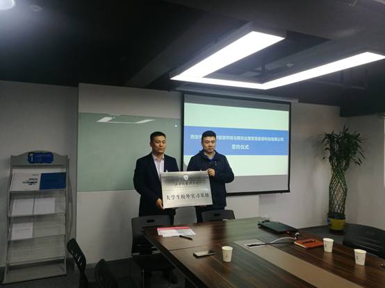 西安三六九互联网产业园有限公司董事长孔小林就曲江369互联网创新创业基地成立的背景及园区的运营情况做了详细介绍;西安丝路智慧旅游有限公司总经理米健就公司的运营模式及管理做了详细介绍。庞闻副处长代表学校对西安丝路智慧旅游有限公司“西安外国语大学”大学生校外实习基地授牌。他表示,西安丝路智慧旅游有限公司响应国家“一带一路”、“互联网+”、“创新创业”战略要求,顺应旅游市场信息化发展趋势,与最前沿的旅游市场相接轨,此次实习基地的建立为旅游相关专业学生巩固专业知识、真实接触职场、加大自身竞争优势提供了宝贵平台。希望通过此次合作,双方实现资源共享、优势互补。