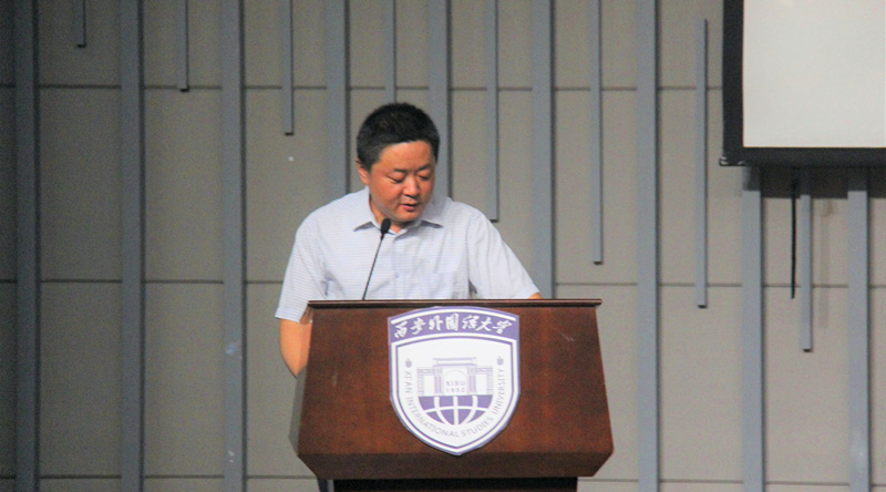 待潘院长讲话完毕,学生代表康洁上台献上鲜花和祝福,表达出我们对老师深沉的敬意和感激。