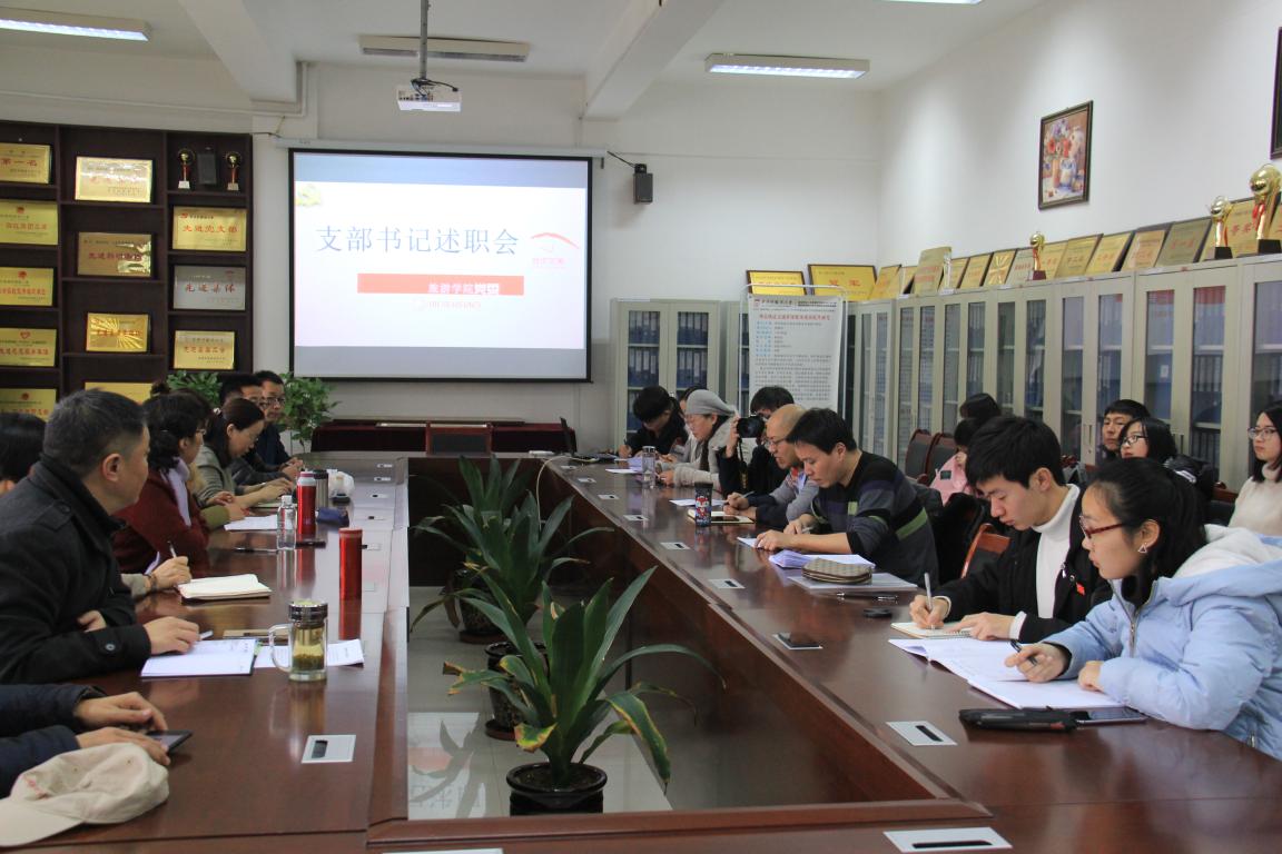 在述职评议会中,各支部书记从支部班子建设、党员队伍建设、工作体制机制、工作业绩和成效四方面对一年来的支部工作进行了全面深入细致的总结与汇报。总体而言,各支部依靠支委会、支部会、党员大会,较好地落实了三会一课制度,将党课学习与学校中心工作和个人具体业务工作紧密结合,围绕“三爱”主题教育活动,认真开展教书育人、科研创新与社会服务工作。