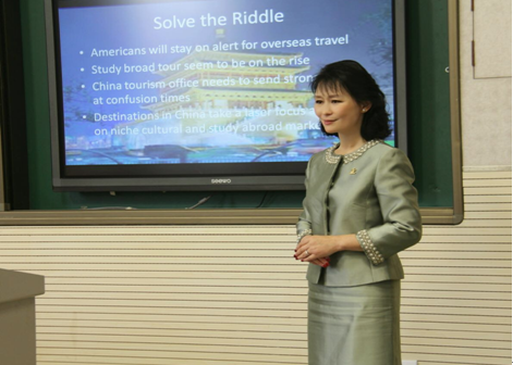 师生做了题为《特朗普时代美国来华旅游前景分析》的学术讲座。讲座伊始,张简教授从数据重要性的角度出发,解析了世界旅游客源国的排名数据以及美国游客来华旅游的原因,同时通过2006-2015年的贸易数据对中美旅游贸易平衡关系进行了分析。其次,在对特朗普上台后推行的一系列经济和旅游政策进行解读之后,张简教授进一步用美国的失业率、通货膨胀率和净移民数据对美国国民在旅游方面的保护主义情绪进行了解释,并就特朗普经济时代下美国的GDP增长率做出预测。随后,基于对美国游客旅游动机和限制的分析,结合当下出国留学的增长趋势,张简教授对我国旅游业如何吸引更多美国游客来华提出了相关对策。讲座最后,张简教授从数据分析的角度和现场师生进行了积极互动,让大家对数据的魅力有了更多的了解和更直观的感受。