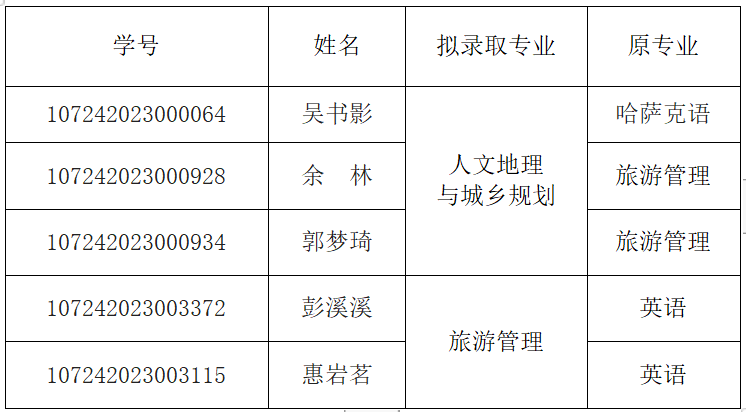 根据《关于做好2023级本科生转专业工作的通知》要求,我院组织了2023级年本科生转专业考核工作,现将拟录取名单公示如下: