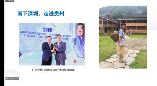 王超副总经理首先介绍了其毕业以来的从业生涯,他表示非常高兴有机会和旅院师生云端分享个人对疫情影响下文旅行业的现状及前景的分析、展望。他指出,文化旅游依托人文旅游资源,旨在满足游客的文化旅游消费需求,核心在于创意,最终是实现对文化符号的包装、销售。文旅行业的价值在于拥有宽广的衍生方向,旅游商品、手工艺品、影视、动漫等都可能成为下一个劲爆点。疫情的逐渐常态化已然成为文旅消费产品生产及销售方面的阻碍,同时,文旅活动的消费场景及传播媒介也在变化,消费者会依赖更加快捷的出行及场景体验方式,微博抖音等电子媒介会逐渐取代报纸杂志等传统媒介,文艺演出发展日趋火热,传统景区已不是人们的第一选择。