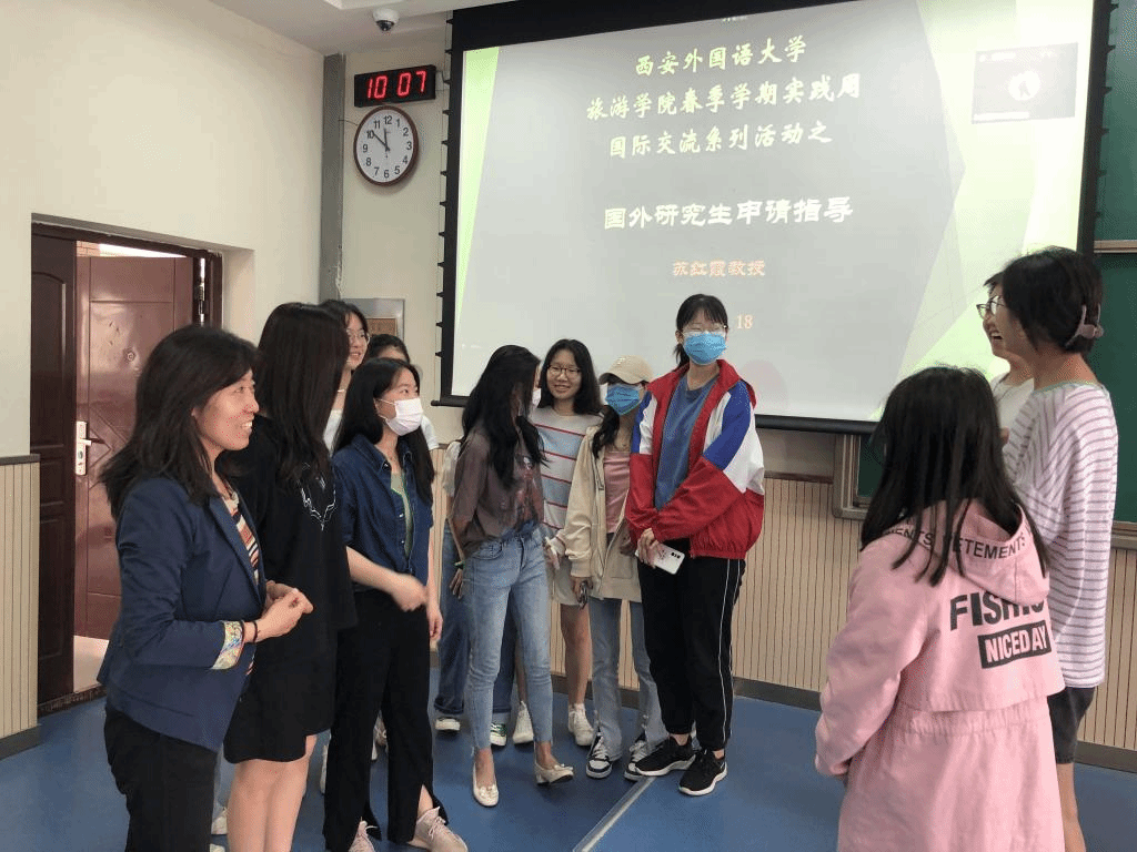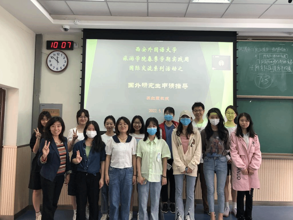 各年级本科生展开,将近30名同学线上线下同时参加,主讲人为负责国际交流工作的苏红霞老师。苏老师对申请攻读国外研究生的现状进行了宏观分析和案例式讲解,从申请的时间节点、外语考试、材料准备、信息提交等环节的要求和操作为同学们进行了具体介绍,鼓励同学们放眼世界、紧抓机遇、提前筹划、DIY应对国外申研过程中的林林总总,为同学们能够更好规划未来提供了宝贵的参考信息。