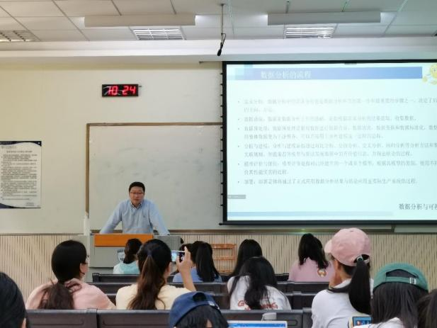 学生做了题为“如何针对社会经济现象开展合理分析”的专题讲座。陈乐博士从论文撰写中的图片排版问题、学生小组参赛时PPT的制作、网页宣传、微信推送等方面解释数据在实证分析中的重要性,同时从宏观数据、微观调查数据、爬取数据等数据的来源向同学们展示了获取数据的手段方式,并通过认识数据、清洗数据、数据可视化三个阶段向同学们讲解如何开展数据分析以及如何通过数据包络法深入分析数据。讲座加深了同学们对数据分析的理解,进一步提高了同学们的专业学科能力及专业素养。