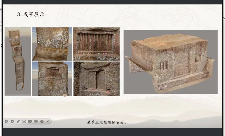 此外,王位宁部长在讲座中向我们展示了数字化采集的两个案例,分别是在考古时发掘的现场墓葬和博物馆馆藏文物—茶壶,其中采用的技术是多视角实景三维重建和手持三维扫描贴图建模。王部长还播放了三维数据采集的制作视频,向我们展示该技术取得的成果。