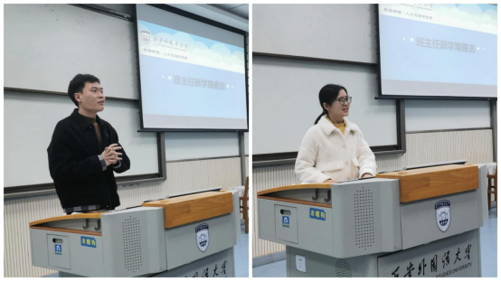 大会第二项,班主任发表新学期寄言。窦睿音老师提醒同学们树立新目标,并为之不懈奋斗,保持自律与坚持,做自己的引领者,并激励大家提升爱校荣校情怀,与母校同呼吸、共进步!韩红珠老师希望大家都能制定属于并且适合自己的新计划新目标,也希望大家不要忘记曾经自己梦想中的自己,在漫漫四年的大学路上不断超越自己,脚踏实地走好人生的每一步。