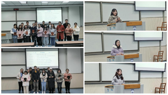 最后,焦老师总结发言。焦老师回顾了上学期主要工作,肯定了班干部、代班默默奉献的服务精神,并激励学霸们继续发挥模范带头作用,引领大家共同营造良好学风、院风。随后,她对大家提出三点要求:一是健康生活,注意疫情防护、用电、防火、金融诈骗、校外兼职、两性健康交往等安全问题;二是快乐成长,希望大家不做情绪的“奴隶”,正确看待认知困扰、学业问题和人际交往挫折,在试错中健康成长、乐观生活;三是抱团取暖,她提醒大家珍惜身边的朋友,携手迈向新征程!