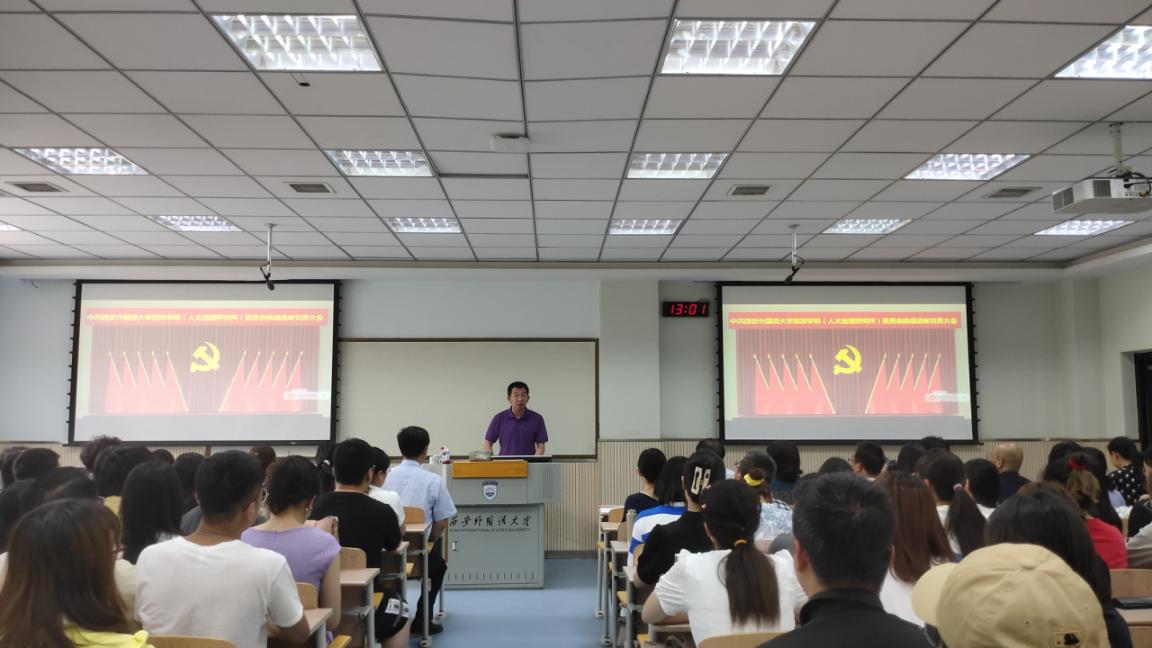 (人文地理研究所)委员会换届选举党员大会于实验楼SD206顺利召开。校党委职能部门负责人苏坤列席指导,学院133名师生党员参加会议。郭建平同志主持大会。