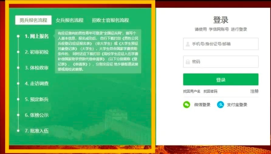 1.登录全国征兵网