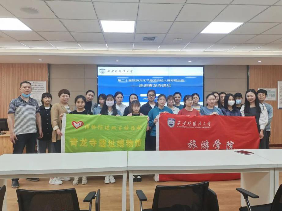 邀请青龙寺遗址博物馆在SB210会议室开展导游技能大赛“走进青龙寺遗址”专题讲座。出席本次讲座的嘉宾有青龙寺遗址博物馆宣传部部长高攀,青龙寺遗址博物馆高级讲解员吴凯凡,青龙寺遗址博物馆公众教育推广负责人马莉、伦楠楠。亚博体育