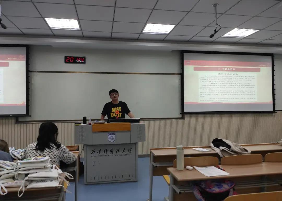 为了深入推进学风建设,严肃考风考纪,营造诚信考试氛围,做好诚信育人,学院于6月17日组织开展“端正学风,诚信考试”主题教育大会。各年级辅导员老师与同学们共同学习《西安外国语大学学生考试管理规定》《西安外国语大学考场规则》,并现场和学生签署了“诚信考试承诺书”。