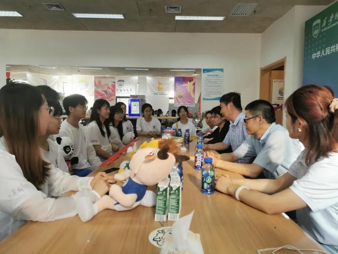 在场的学生群众演员和吉祥物扮演者一一自我介绍,并谈及训练心得感悟。