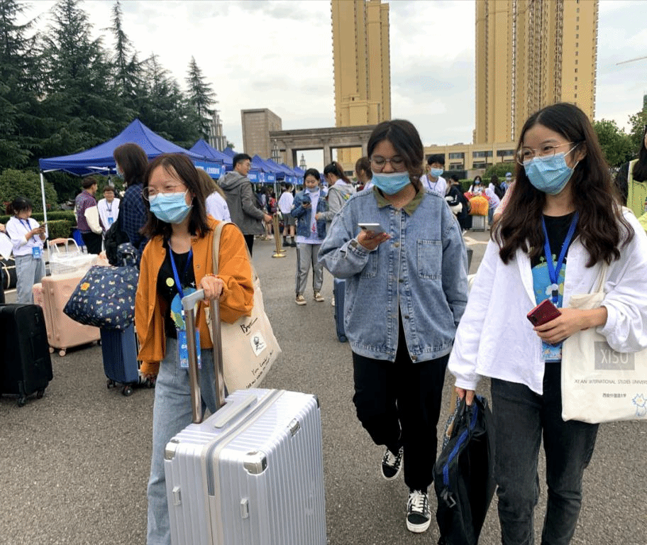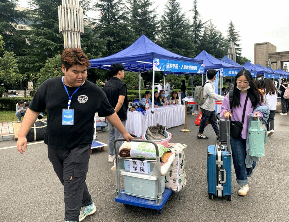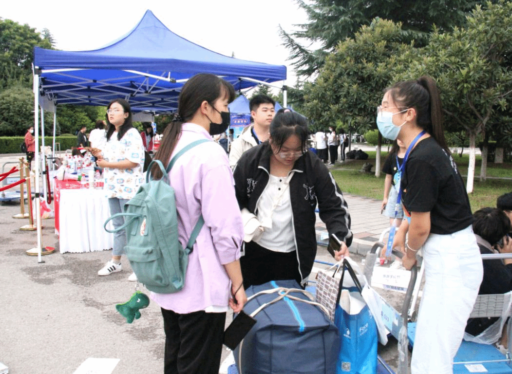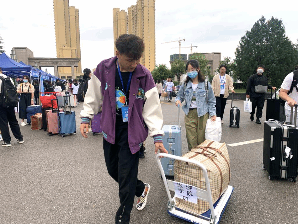 21级的小萌新们拎着大包小包陆陆续续赶来啦~快来让学姐学长们帮帮忙!