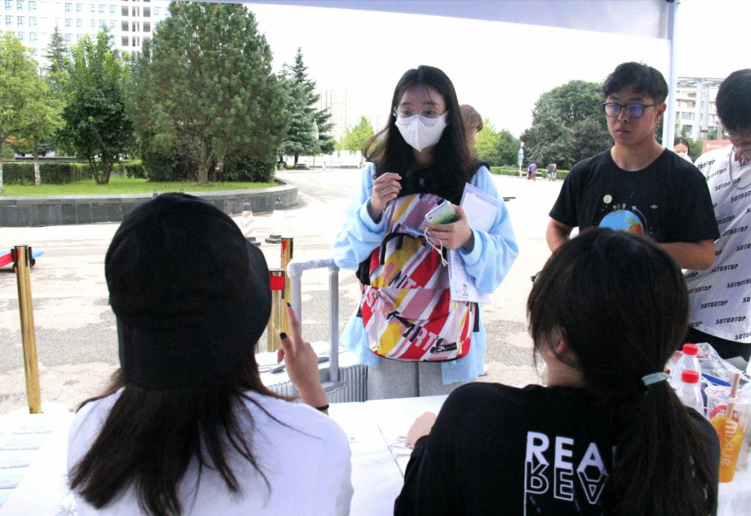 一早,志愿者们就兴致勃勃地来到校门口迎接21级萌新的到来。